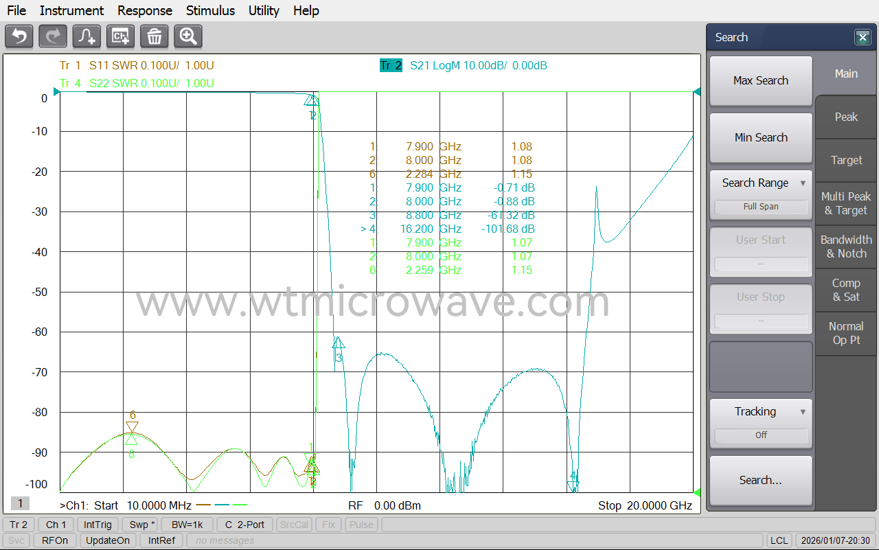 ≤1.0dB @ DC ~ 7.9GHz ≤1.5dB @ 7.9 ~ 8.0GHz |