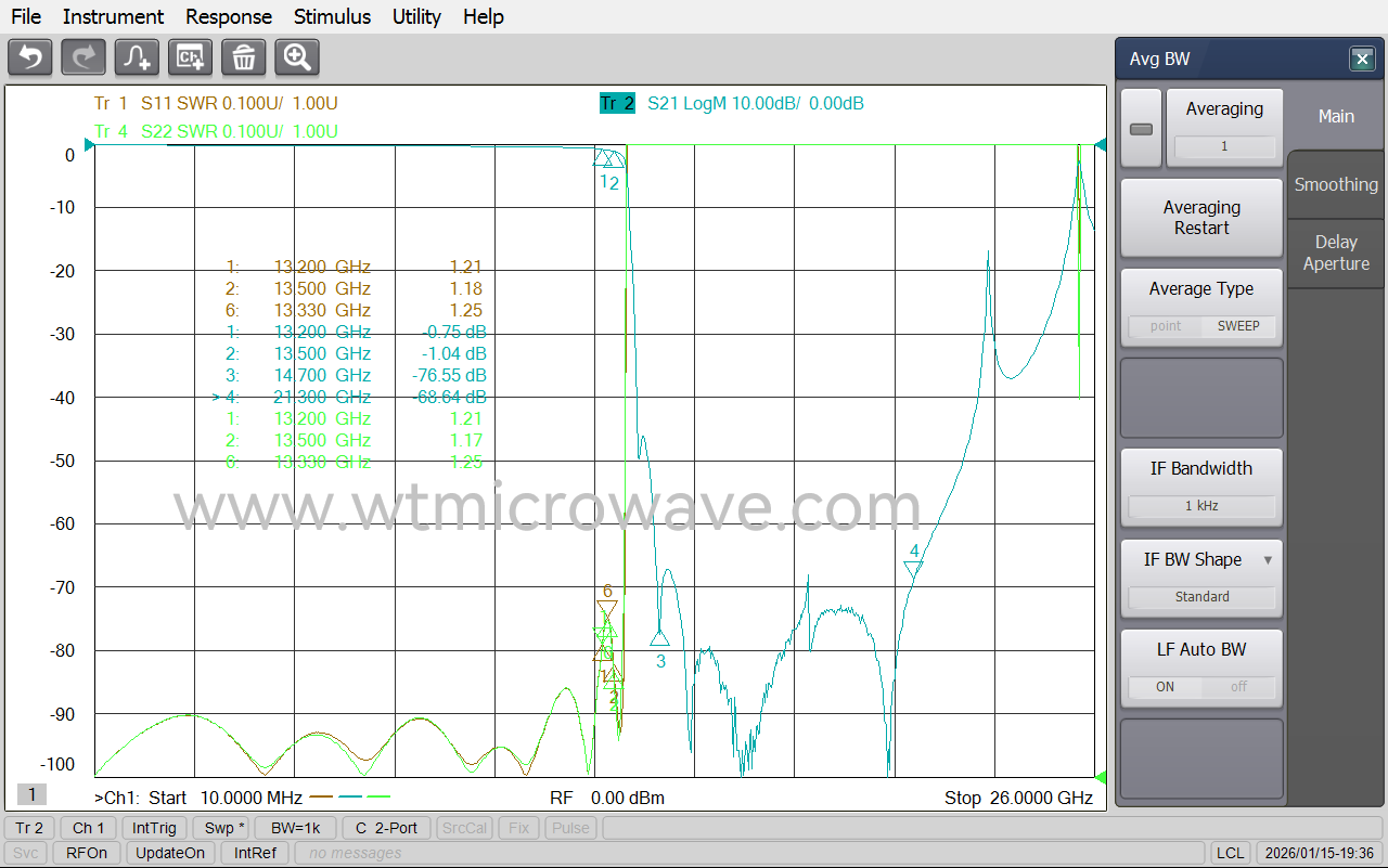 ≤1.0dB @ DC ~ 13.2GHz ≤2.0dB @ 13.2 ~ 13.5GHz |