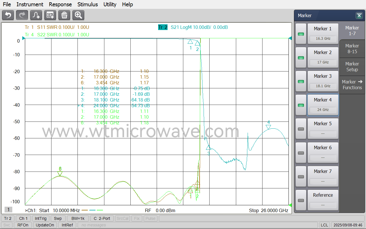 ≤1.0dB @ DC ~ 16.3GHz ≤3.0dB @ 16.3 ~ 17GHz |