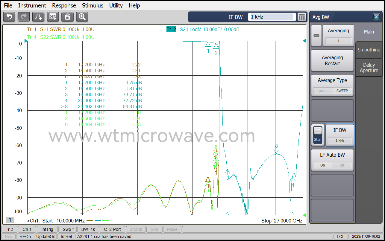 ≤1.0dB @ DC ~ 17.7GHz ≤3.0dB @ 17.7 ~ 18.5GHz |